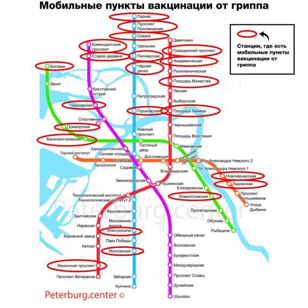 С 1 сентября петербуржцы могут привиться от гриппа возле вестибюлей станций метро: Василеостровская, Приморская, Проспект Просвещения, Озерки, Парнас, Гражданский проспект, Московская, Горьковская, Чкаловская, Старая Деревня, Комендантский проспект, Черная речка, Беговая и другие, сообщили в комитете здравоохранения.