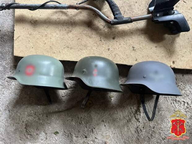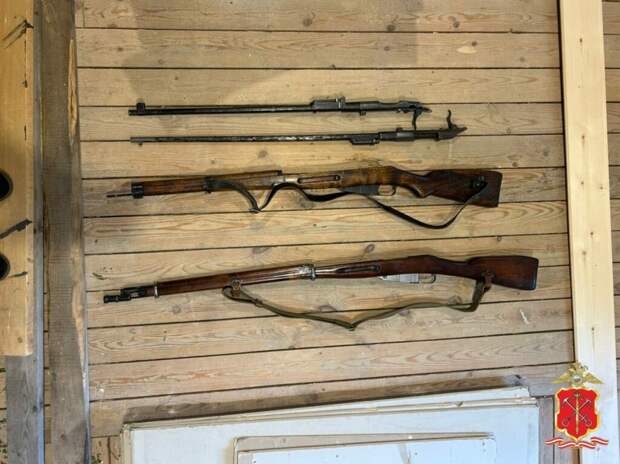 Оказалось, что стражи правопорядка нашли в его частном доме и сарае три предмета, похожих на винтовки разных моделей, металлическую ленту с патронами, пять штыков, четыре каски, предварительно, времен Великой Отечественной войны, гранату и составные части оружия.